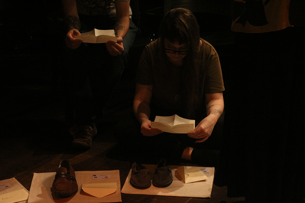 participaram do processo criativo doando suas histórias, seus sapatos, ou ainda o seu tempo para transcrevê-las… A lista de agradecimentos no programa da peça é vasta. Prova de que o Teatro é uma arte coletiva, feita a muitas mãos, ainda que haja uma única pessoa em cena.