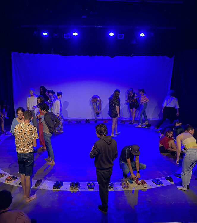 No decorrer do processo criativo surgiu a ideia de uma cena interativa, inspirada no museu da empatia, um museu sediado em Portugal. Para tanto, as 50 pessoas que compartilharam suas histórias também doaram um par de sapatos. O público, também limitado a 50 pessoas será convidado a calçar um sapato diferente do seu e ouvir a história daquela pessoa e tentar se colocar no lugar